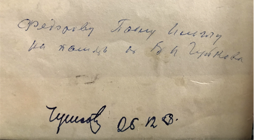 Pictured: V.I. Chuikov, mid-1938. On the reverse side of the photo: signature of Marshal Chuikov from 25 December 1958, given to author Pavel Ilyich Fedorov (1905–1983).
